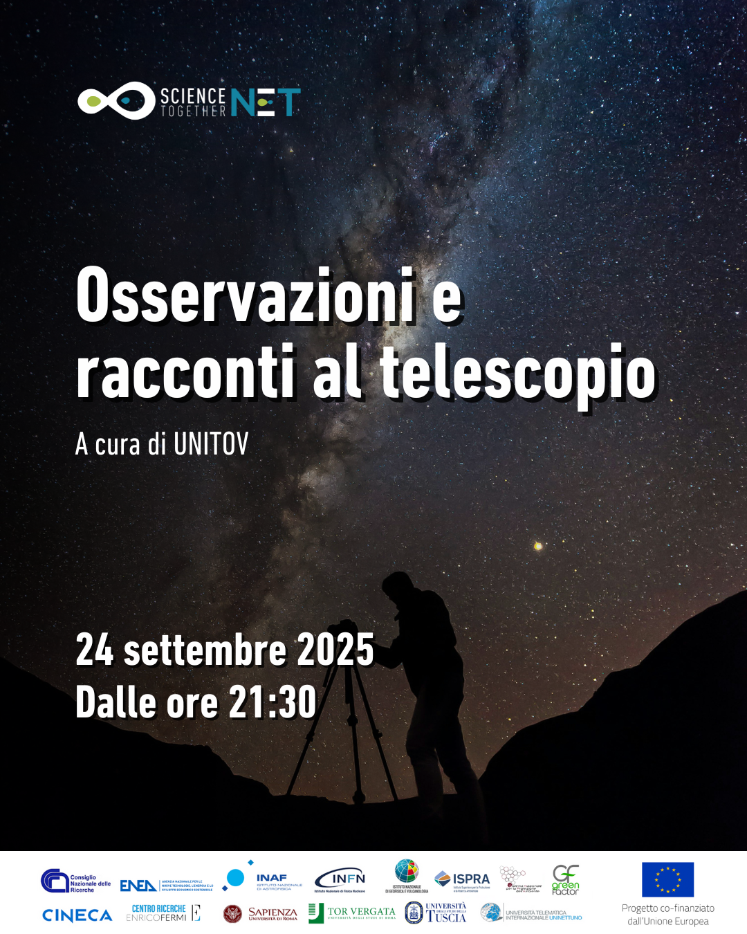 In attesa della Notte Europea delle Ricercatrici e dei Ricercatori 2025, vi invitiamo a un appuntamento speciale della Science Week: una serata per guardare il cielo da vicino, tra stelle, pianeti e racconti al telescopio.