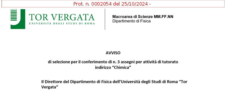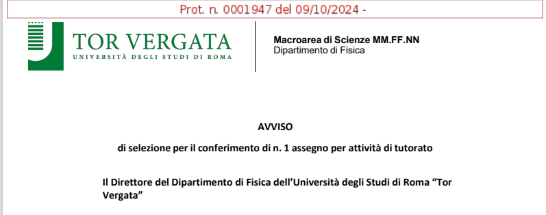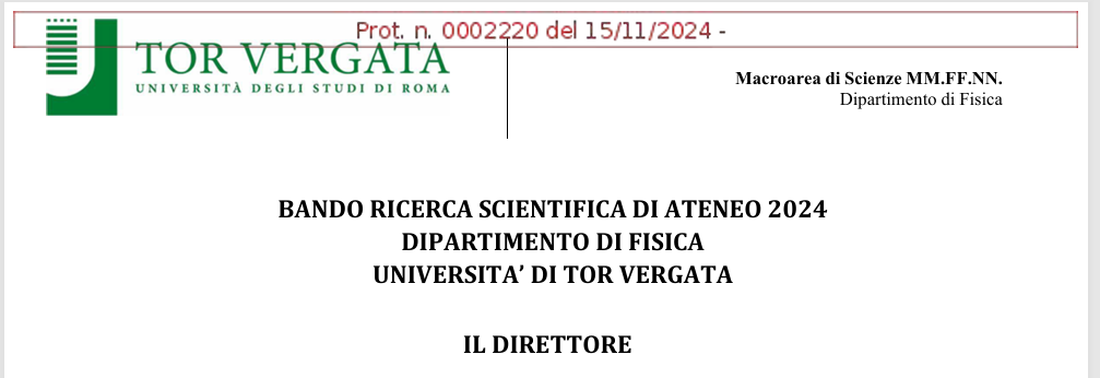 BANDO RICERCA SCIENTIFICA DI ATENEO 2024 DIPARTIMENTO DI FISICA UNIVERSITA’ DI TOR VERGATA