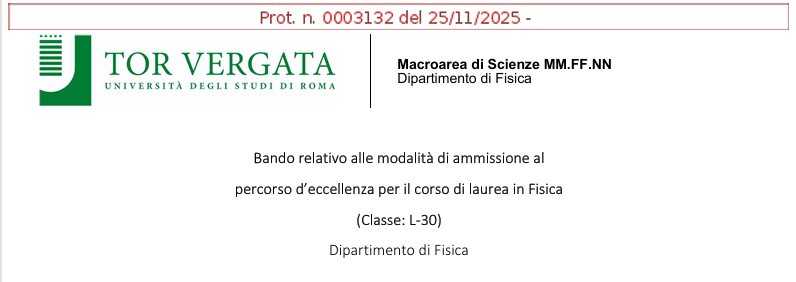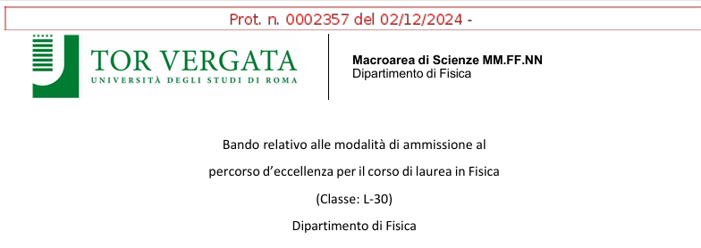 Bando relativo alle modalità di ammissione al percorso d’eccellenza per il corso di laurea in Fisica (Classe: L-30) a.a. 2024/2025