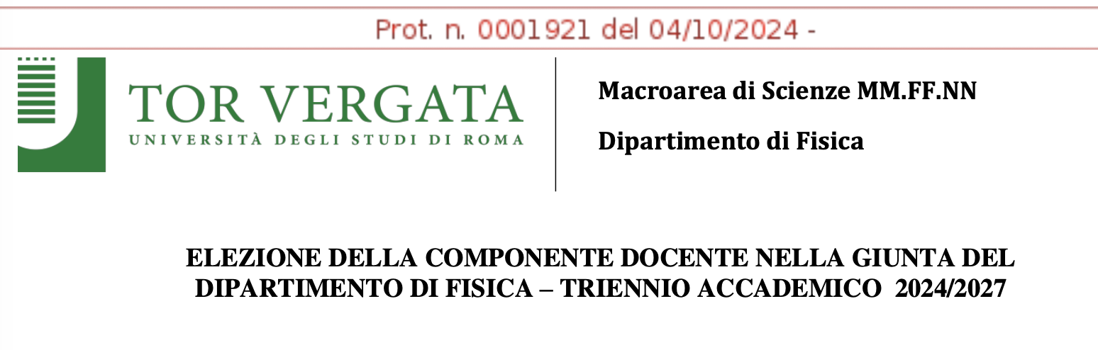 ELEZIONE DELLA COMPONENTE DOCENTE NELLA GIUNTA DEL DIPARTIMENTO DI FISICA – TRIENNIO ACCADEMICO 2024/2027