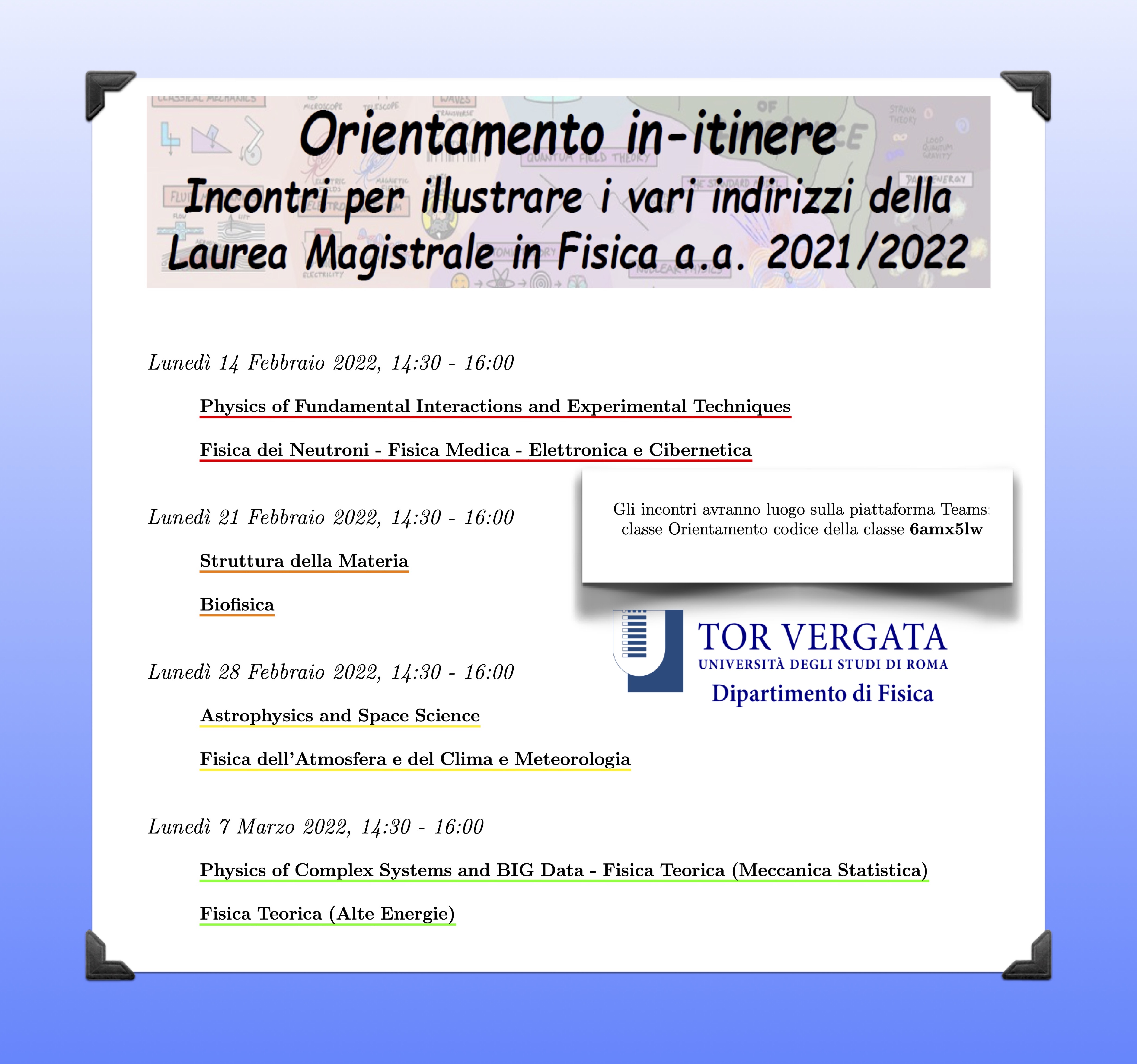 Incontri di Orientamento - Laurea Magistrale in Fisica a.a. 2023/2024