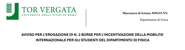 AVVISO PER L’EROGAZIONE DI N. 2 BORSE PER L’INCENTIVAZIONE DELLA MOBILITA’ INTERNAZIONALE PER GLI STUDENTI DEL DIPARTIMENTO DI FISICA