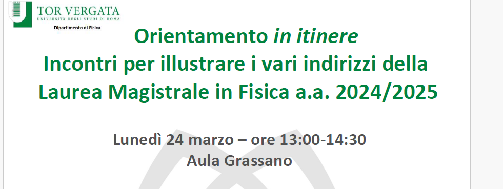 Incontri di Orientamento - Laurea Magistrale in Fisica a.a. 2024/2025