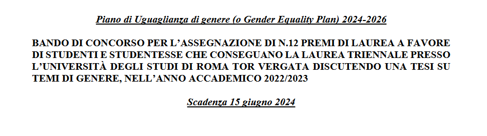 Bando di concorso per l'assegnazione di n. 12 premi di laurea che conseguano la laurea triennale presso il nostro Ateneo con una tesi su temi di genere