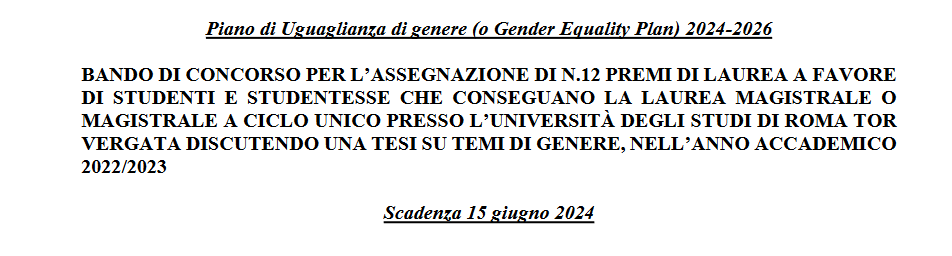 Bando di concorso per l'assegnazione di n. 12 premi di laurea che conseguano la laurea magistrale/ciclo unico presso il nostro Ateneo con una tesi su temi di genere