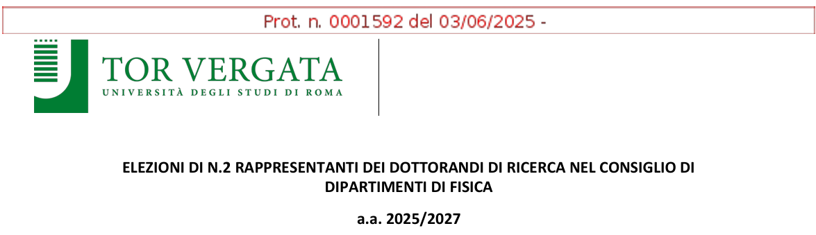 ELEZIONI DI N.2 RAPPRESENTANTI DEI DOTTORANDI DI RICERCA NEL CONSIGLIO DI DIPARTIMENTO DI FISICA